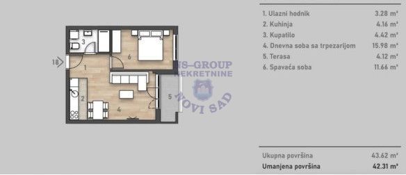stan na prodaju Novi Sad 42m2 563030